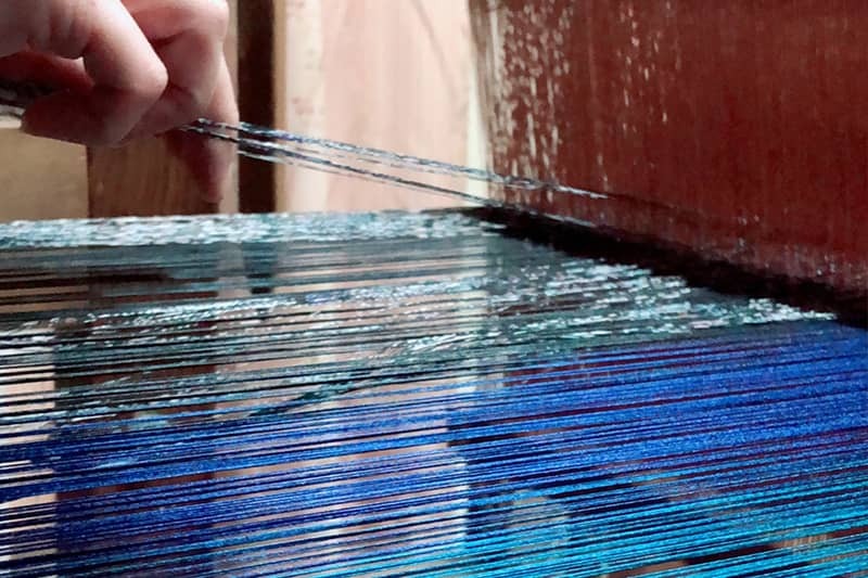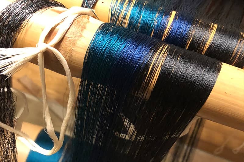 糸をほどく。糸をほどいていきながら実際に織るための準備をしていきます。時間をかけながら丁寧に糸をほどいていきます。